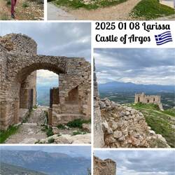 Bis auf ein Pärchen, das bereits im Aufbruch ist, sind wir die einzigen hier. Später folgt eine junge Familie mit drei Mädels. Herrlich, der Ausblick auf Argos und in der Ferne auf die Bucht von Nafplio. Die Festungsruine selbst ist nicht grad der Brüller, auch fehlt jegliche Info über die einzelnen Gebäudeüberbleibsel. Hier wurden Millionen investiert, aber so eine doch recht wichtige Kleinigkeit fehlt. Das kann man besser machen.