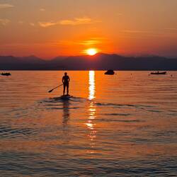 Auf einem Campingplatz am See haben wir die SUP Boards aufgepumpt und sind auf dem wunderschönen Achensee gepaddelt, Hinweg war super, erstmal im Strandbad Burger gegessen, dann kam krasser Wind auf,Read more
