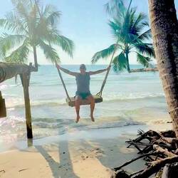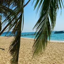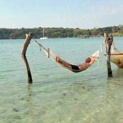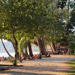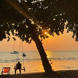 Es ist ein Traum hier auf Koh Kood. So schönes klares Wasser, viele Meter rein ins Meer, Puderzuckerstrand und schöne Palmen. Was will man mehr. Gut abends werden hier recht früh die BordsteineLæs mere