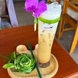 Nach dem Frühstück sind wir zu einem lokalen Morgen Markt gefahren, wo Thais ihr Essen einkaufen. Hier gibt es vieles zu bestaunen. Uns war danach nach einem 2. Kaffe und wir haben ganz in der NäheLæs mere