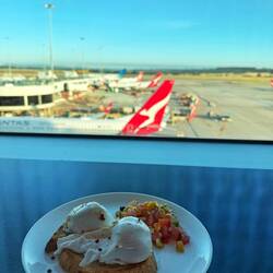 Maria, the fixture of the lounge, was on hand this morning. Her ability to remember coffee orders is amazing — Google “Maria Qantas Lounge Melbourne” to learn more about her post–head injury talents. I obviously haven’t been flying enough though, as she didn’t remember my order this time around (although she has the past few times), or maybe she knows I’m now a grown-up and drink coffee — albeit still mixed with chocolate.