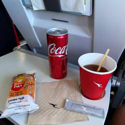 We cruise at 19,000 ft as the crew serve banana loaf, tea, coffee and cold drinks on this short hop to Tassie. The first officer announces we’ll arrive five minutes ahead of schedule. “How do you have your tea, love?” I’m asked by the cheery crew member. “Black with one, please.” “Surely you’re sweet enough already,” she replies, adding that my can of Coke to go with it is “a breakfast of champions”. It’s these small, friendly interactions with crew that I love — reminders that life doesn’t always need to be serious.