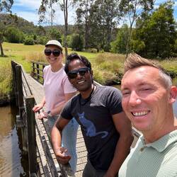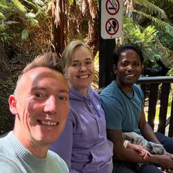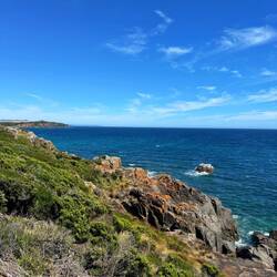 With that somewhat philosophical description of the experience complete, and windswept group selfies taken, we made the walk back to the car in another 12 minutes — thrashing the suggested 40–50 minute timeline with ease. I learned on the walk back that Brigid and CK are “twitchers” as they stopped to take in the black cockatoos squawking in the trees above. It was time to head back to the Airbnb, where I lay on the grass writing some blogs, enjoying a beer while Brigid read a book. CK meanwhile was taking care of us, cooking a delicious fresh dinner. Day one complete, I crashed into bed before the sun even set, happy to have shared this day with great friends.Read more