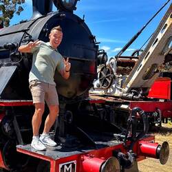 Interiors examined, we skipped across from the platform to the turntable, where a trio of steam engines in a lesser state of restoration were longing for some love. I climbed aboard the front of one of them for a nerdy selfie before Brigid and I climbed up into the driver’s cabin of the larger steam engine. Standing in the open cabin, big call Brigid asked me the big philosophical question of the day. “If you were born 150 years ago, would you have been a train driver or a conductor?” I like that these were the only career options for this avgeek travel nerd Carl 150 years ago, before aviation was even invented. Without hesitation I opted for the conductor option — “you’d get too dirty from all the coal and smoke being a train driver, I’d be the conductor.” On reflection, it wasn’t just the cleanliness factor that swayed me. The uniforms of railway staff back in the steam era had a certain level of flair and class about them.
