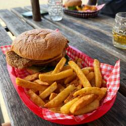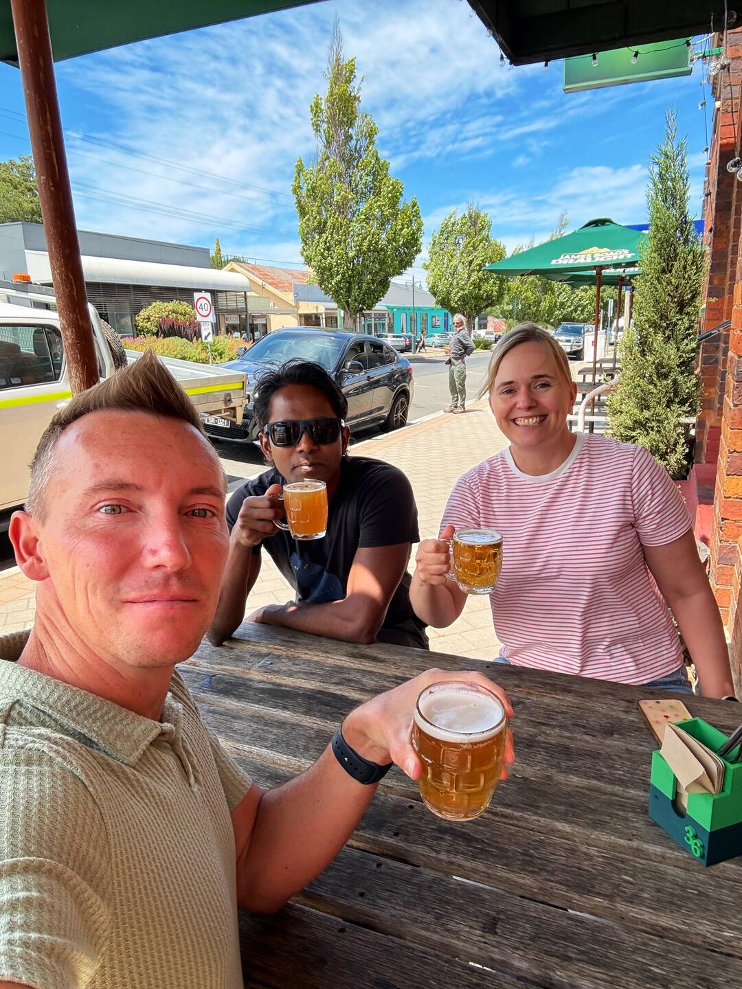 Walking from the car to the pub, Brigid and CK stopped to look at property listings in a real estate window. “You can buy property later — let’s eat first,” I sassily said, realising I was only minutes away from landing in full hangry mode. I know my own strengths and weaknesses, and getting hangry is very much one of them. We grabbed a table outside in the sun and I, the mostly vegetarian, ordered a southern fried chicken burger and a beer. 🤔
