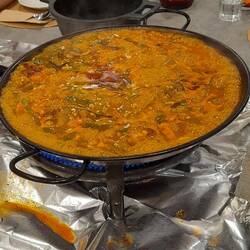 • "Lebasi Taler de Cocina" - den Kochkurs fanden wir nicht besonders und empfehlen ihn daher nicht. Es war nicht organisiert, in 3 Stunden habe ich 1 Knoblauchzehe geschnitten, ansonsten schaut man nur zu und quatscht mit den Teilnehmern - dafür muß man nicht unbedingt 70€ zahlen. Die Paella hat einen geräucherten Geschmack, die Sangria ist sehr verdünnt mit Fanta und Sprite🤷♀️