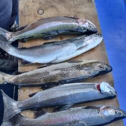 We enjoyed catching up with Kate and Co in Cromwell where we ate cake to celebrate her birthday, albeit a bit late. Cornhole is a big deal this summer...very hot competition! We also caught up with Daniel and Co and got to wish Sarah a belated Happy Birthday too. We loved our few days with Pip and Ken at Camp Golden, in Wanaka. David was really fortunate to score a day on Lake Wakatipu with Ken and his brother-in-law who has a classic boat. They joined others for a regatta. We had a few domestic appointments to catch up with and were due a service on the Motorhome, so we headed to Richard and Jo's in Riversdale. We love catching up with this family so it's a treat that Rich can do the work for us. What about those PURPLE balage bales!!!!!! The following day we headed to Te Anau via a sad funeral in Gore. David met up with his Tight Five fishing buddies and left me in charge of the MH for a couple of days. I really enjoyed a decent walk; the first since I was ill. I'm loving the spoils of the men's efforts. The fish was a mixture of rainbows and browns.