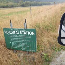 We left Te Anau not really knowing where we'd end up but had thought maybe Cromwell. We got to Fairlight where David discovered a fishing spot behind the old station. There is fishing system on the Upper Mataura called beats. I'll post a photo so you can read about them. We thought it a good way to manage a fishery that there'd been some squabbling about. As we left it began to drizzle so decided to explore up the Nokomai Road. David was given a beautiful painting by a lovely friend, some years ago, and we wanted to see the landscape it was based on. Well, we discovered a gorgeous valley with a really beautiful freedom camping area for self contained MHs and caravans. It's on private farmland. Generous farmers! The photo doesn't do it justice, it was raining!