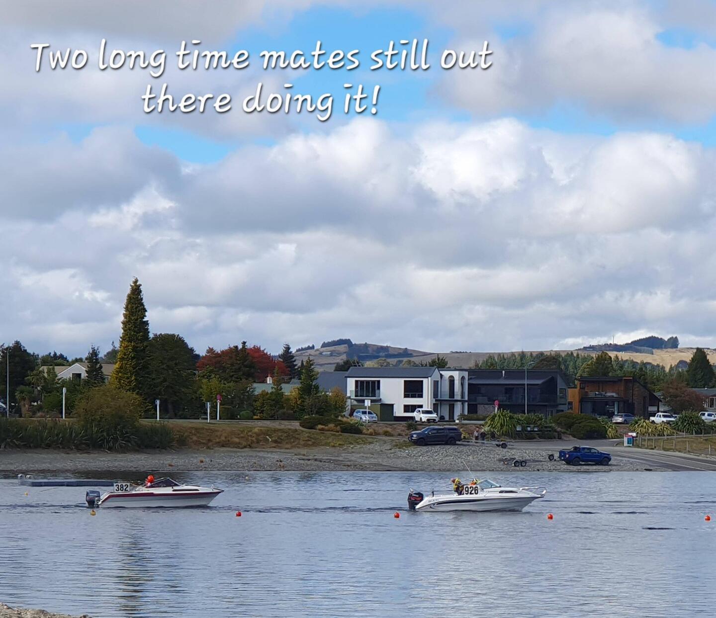We stayed at Manapouri until the 2nd April. The NZMCA camp is great and we loved just meandering around. Walking, biking and exploring and happy hour each afternoon introduced us to lots of friendly and interesting people. We moved onto Te Anau for the 60th Anniversary GBC boat marathon. A number of us 'oldies' who had competed from the 70's, gathered for a memorable time, full of laughs, embellishments of the truth, over indulging in life's bounties, eh Colin and Ewan, and reminiscing. We were also proud to join our son and 2 nephew's and their families who were also competing. Davey, a life member of the club, made a speech recounting the history of this event and included a few stories. Daniel had two fabulous wins, yay, and Davey and crew, Ian, placed an impressive 7th in the nominated speed event, the best of all the 'oldies'!! Of note Gary beat Ewan!!