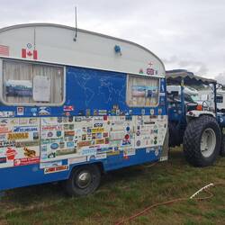 We left Cromwell for Wanaka on the 16th and have been here for 2 nights. David and I are volunteering ourselves to help at this monster event. We're doing a variety of jobs from setting up the big shed for Prizegiving on Saturday night, gate keeping, monitoring people coming in and out of various sectors, driving shuttle vehicles etc. We'll take photos of the actual event tomorrow and post those later but today I've had a wander around the camping area where we, along with loads of others, volunteers, exhibitors etc, are staying. The array of set ups is interesting from the rudimentary to the very sophisticated. Have a look at the pics!. The caravan with all the stickers belongs to Ian Begg, from Wyndham, who has taken it and the tractor all round the world. Dinnys Dunny belongs to set up before it.Les mer