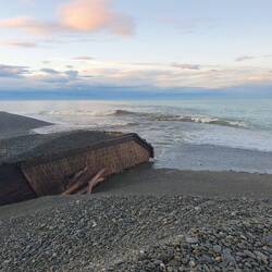 We parked up at Anne and Stuart's again where I cooked dinner and enjoyed the evening with Stuart, Paula and Guy. The plan was that P and G were to pick us up in the boat, the next morning, and take across to Portage, where they live, for the night. Well laid plans and all that..... Guy had his ute and trailer with a load gravel on it at Stuart's so we offered to drive it in to Portage making sure to time the road opening for locals just right. Was a bit interesting when the traffic light folks got the signals muddled and there were two green lights at the same time! I'm pretty pleased David has exceptional backing skills..... there were two big rigs driving right at us among the big machinery and road crews.. Loving that they saw the humour in the situation! Gosh there's significant work going on and the road from Linkwater into Portage and beyond remains very fragile but there is a plan.
