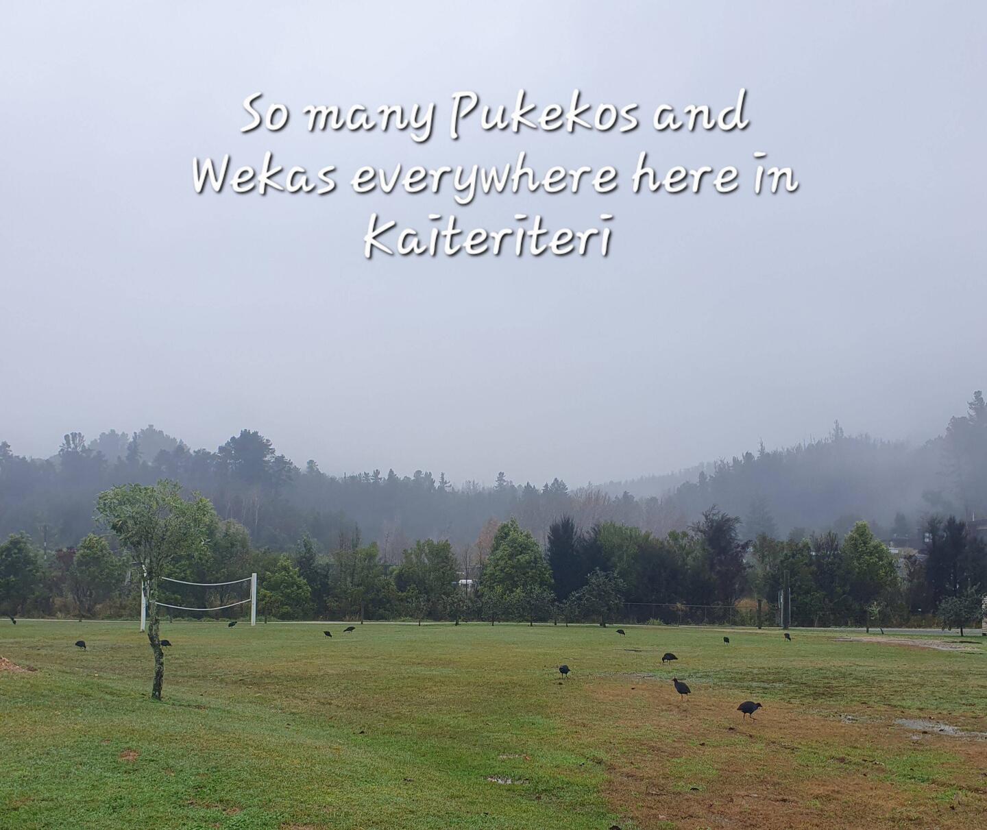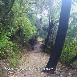 We left Aussie Bay and headed, via Queen Charlotte Drive, to Kaiteriteri. We thought that the weather was to better over there and we'd be on power should anything go awry weather wise. There were big warnings out. We arrived in rain and settled into Bethany Camp. We were impressed. A very friendly, social group of people who come together for morning tea each day and other social gatherings throughout the week/ month. Whilst it was raining it was not cold and there was no wind so we went walking in our raincoats and with umbrellas several times. We discovered the pretty estuary walk into the village and beach and walked it daily. The Little Kaiteriteri track is also lovely but with steep steps down we only walked up to the top. We drove over the hills to Marahau where we walked the start of the Abel Tasman Walk. We didn't get as far as we'd have liked, about 45mins in, but we were stopped by a slip on the track. We saw enough to know we want to do more. That evening we walked to the pub in town to watch the ABs beat France. Phew! We enjoyed our week in Kaiteriteri and will be back.