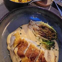 Free range chicken breast with creamy lemon dressing, toasted lettuce, almond rice andRead more