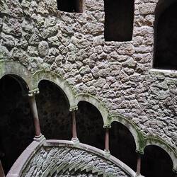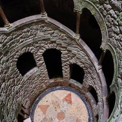 The Initiation Well, in some way, is an entrance to the underground labyrinth too. It is connected to other entrances via a series of underground walkways. The Initiation Well has a striking spiral staircase supported by carved columns, that lead down to the bottom of the well through its nine landings. It is believed that the spacing of these landings, as well as the number of steps in between, are linked to Tarot mysticism and Masonic principles. At the bottom of the Initiation Well is a compass over a Knights Templar cross, which is said to have been the coat of arms of Carvalho Monteiro, pointing to his association with Rosicrucianism.