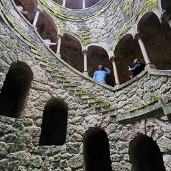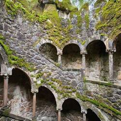It is believed that Templar initiations at Quinta da Regaleira began with candidates entering one of the Initiation Wells blindfolded. Holding a sword close to their heart, they would descend nine flights of stairs – a number that represents the nine founders of the Templar order. Once reaching the bottom of the well, the candidate would walk into a dark labyrinth where they would symbolically and literally find their way up towards the light. If they were able to make back through the well tower and into the sunlight, initiates would walk across stones in water to reach the chapel, where they would then be welcomed into the brotherhood.