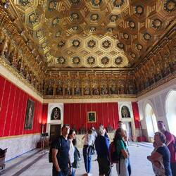 》All of the halls and rooms have a mix of Christian and Mudéjar (Moorish) aspects including azulejos, carved arches and incredibly decorated ceilings. The Sala de los Reyes (The Hall of the Kings) stands out, a room depicting sculptures of the 52 kings who’ve ruled here.