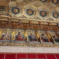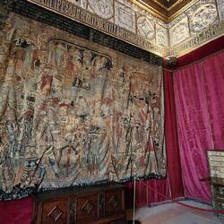 Inside the cloister you can visit the Chapter House, designed by García de Cubillas. It has a fantastic coffered ceiling carved in 1559 and a collection of Flemish tapestries narrating scenes of Queen Zenobia of Palmyra. In the Chapter House you can see the gilded silver monstrance that processes on Corpus Christi, and a small museum room also displays one of the first printed books in Spain.