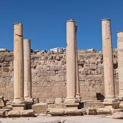 Gut geschlafen und gefrühstückt. Sitzen jetzt 9 Uhr im Bus , noch angenehme Temperaturen und fahren durch Amman Richtung Norden z den Römern