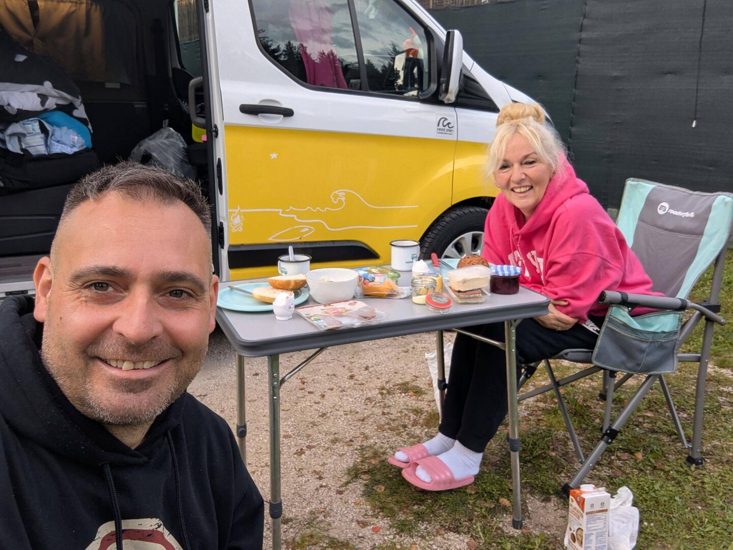 Nach einer durchschnittlichen Nacht, es war sehr kalt und gewöhnungsbedürftig, ich lag eine Stunde wach, sind wir gegen 6:30 Uhr aufgewacht. Nun ja🤔