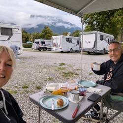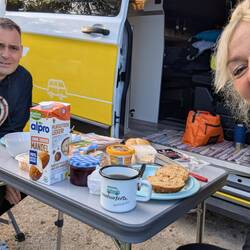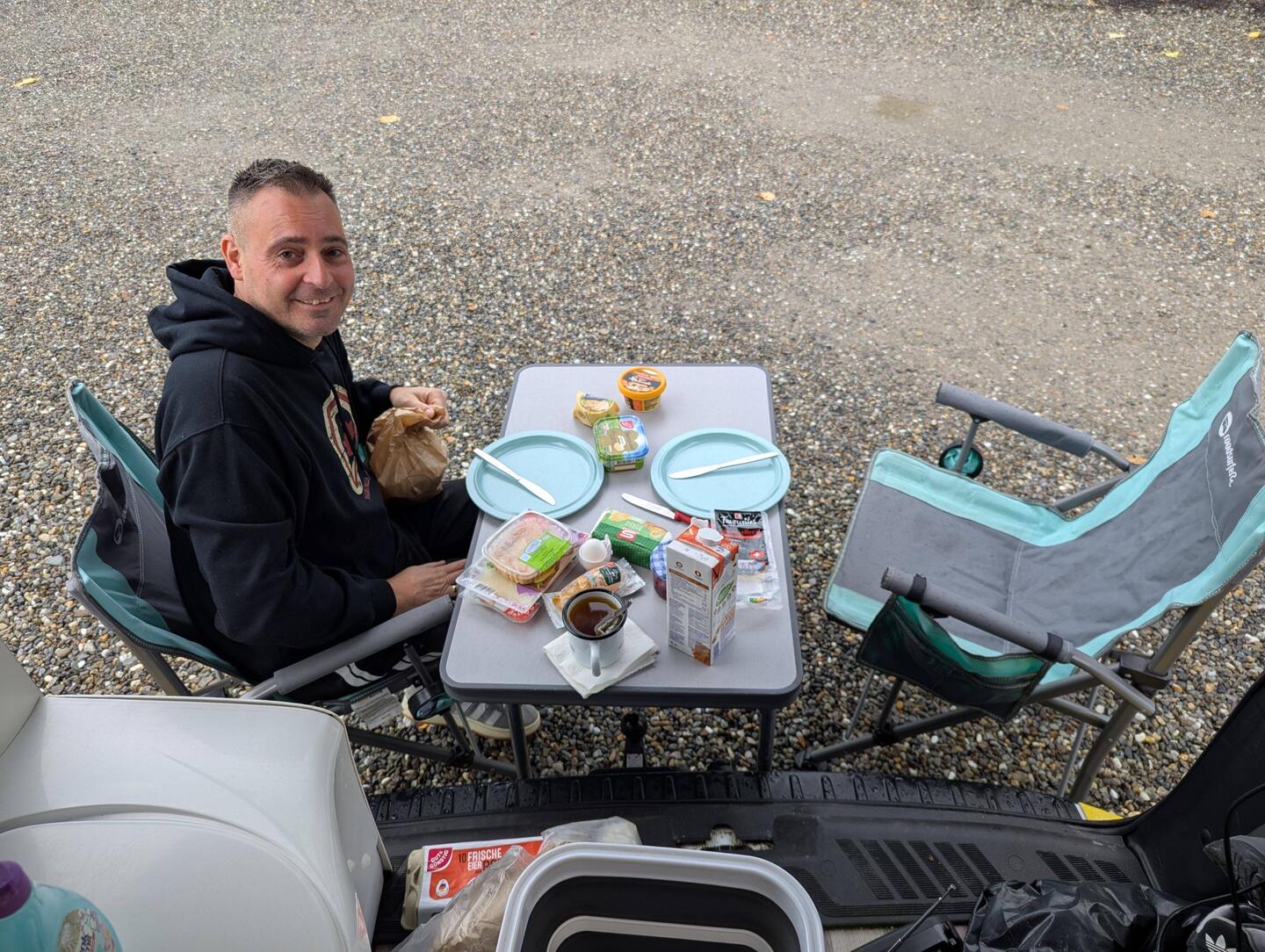 Das letzte Mal Frühstück im freien 😜. Alles eingepackt, los geht's Richtung Stuttgart zu Biggis 50.🥳