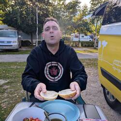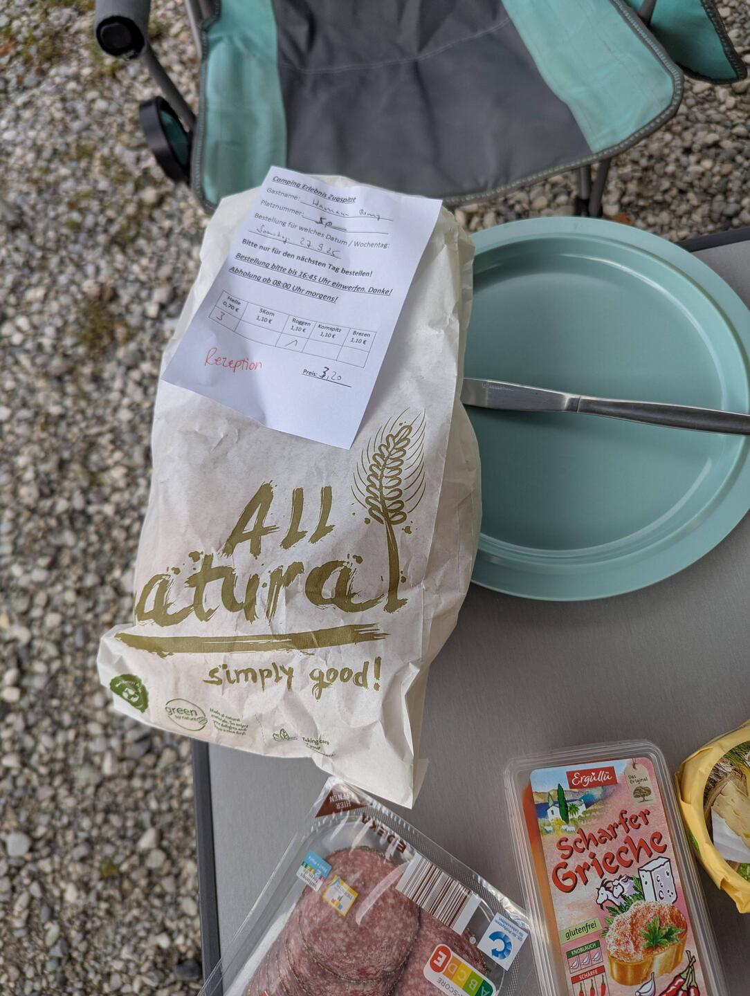 Auf dem Platz gibt es auch frische Brötchen mit Vorbestellung, so gefällt uns das.