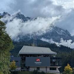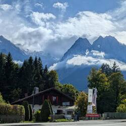 Unser Tag begann mit Frühstück im Nieselregen 😄. Dann ging es los Richtung Garmisch, am Wegesrand noch Wein aus der Region entdeckt und mitgenommen 🍷😀.