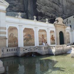 Finally after that, the Pferdeschwemme, where the horses of the Prince Archbishop who ruled Salzburg were watered and bathed. It was originally built by Prince Archbishop Johann Ernst Graf von Thun. I don't know why I was so keen to see this particular bit of Salzburg, but I was. Also, the pictures aren't great. I was lagging by this point, and we had many hours ahead of us. It made me think of the German Rider's song based on a poem by Friedrich von Schiller, Wolauf Kamaraden aufs Pferd. Here's a version with an English translation