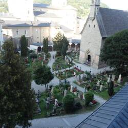 We like graveyards, not in strictly a Gothy sort of way, they're just interesting. All right, some of it might be a hold over from the Goth days. It's kind of which came first thing: did we like graveyards because we were sort of into Goth, or did we become Goth because we liked things like graveyards, dirgey music, vampires, monsters, etc, and overly dramatic clothes and hairstyles? In addition to this really nice graveyard, this complex houses part of the oldest continually used German speaking monastery founded by (surprise) Saint Rupert, a chapel carved into the Festungberg, and a really nice little church.