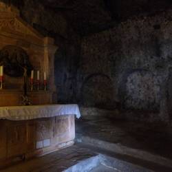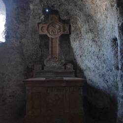 The catacombs, though the official site of the monastery says they're not catacombs, but rather, chapels carved into the rock face, are said to date back to the days of Severinus of Noricum during the Migration Period of the Fifth Century CE, which back in my day we called the Barbarian Invasions of Rome. That aside, Severinus went to the Roman frontier along the Danube to preach, help the poor, and establish monasteries. When things went sideways with the late Roman Empire, he stayed to assist refugees, organize migration routes to areas deemed to be safer, and help with organizing the military defense. His reputation was such that along the way, he earned the esteem of one of the migrating/invading Germanic leaders, Odovacer. There are two chapels in the rock face, one dedicated to Thomas Saint Beckett of England (he who was killed by drunken knights of King Henry "who will rid me of this turbulent priest" Second).