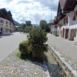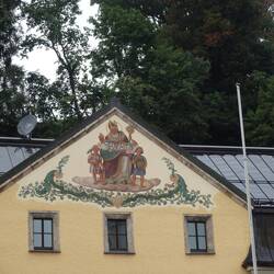 The town is beautiful. As an American imagining a town in the Alps, it doesn't get much better. There's Lüftlmalerei everywhere, and not just in the pedestrian zone or on the public buildings and hotels. It's on people's homes, stores, and it's all very beautiful. There are flowers in all the window boxes, in planters along the streets. Through the main street of he pedestrian zone is a little run of water.