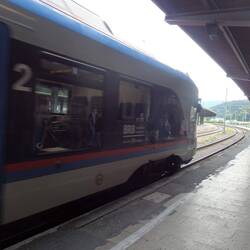 After a stop in Garmisch, which looked okay, a bit overcrowded, we were back on the road to Mittenwald. The bus left us off at the front of the train station. So far, so good.