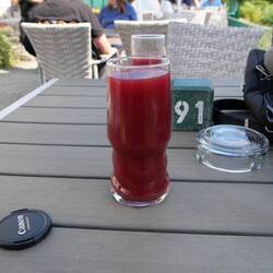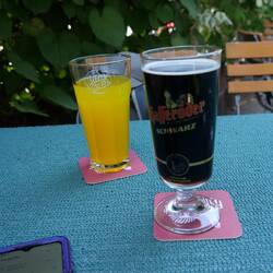 Dinner was at the Brauhaus Goslar, because of the beer. They brew Gose beer, based on the Medieval recipe including salt and coriander. Because of this, the beer doesn't pass under the German Beer Purity Act. It was good though. His; dunkel. Mine: with cherry liqueur.