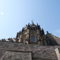 Note Two: Pictures weren't allowed in the treasury (wah) or the crypt (WAHHH!), but we bought some postcards, and took pictures of them so you could see what I'm so jazzed about. Heinrich's burial place is third from the end, the next is his beard comb, the last the tombs of three of his daughters and the Abbess Agnes of Meissen, another very influential figure in the time period.Read more