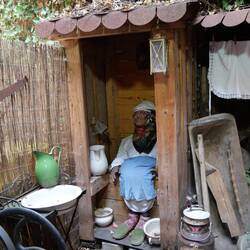 Today, it's a museum with various odds and ends, including a mannequin of old Oma on the outdoor privy, a display of dishes, dolls, and kitchen tools. Interesting little place.Read more