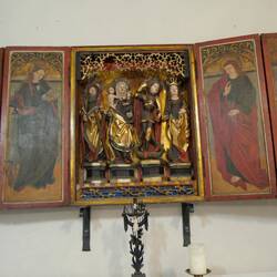 Some things of interest: an early Fourteenth Century crucifix, a very nice Gothic altar from Brussels (1480), textiles from the 1500s, a Baroque organ, and a sacristy cabinet from the Thirteenth Century. Oh, and a wood carving of Martin Luther. Can't forget that.