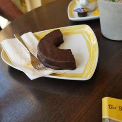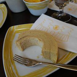We made our way back to the car, and again, there were a lot of things to look at. Wernigerode is a very attractive city, architecturally. Our plan was to go to the home of the original Baumkuchen, which is a kind of cake made of thin layers, shaped into a circle. They used to be plain, served warm with maybe a bit of sugar. Now of course, things are complicated and there are various fillings, coverings, etc. We got one natural, one with dark chocolate. The natural was better.