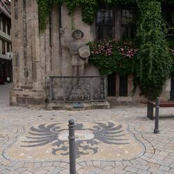 After breakfast, but before the Kaiserpfaltz opened, we wandered over to that side of the Altstadt. First, I took a picture of the garden at the place we're staying, then a bus stop. And why would I do that? Because it's a replica of the throne the King/ Emperor used here in Goslar. The ad: you can feel like an Emperor.