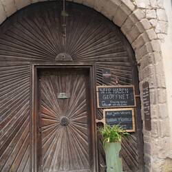 It was going to be another hot day, so we decided to take the walk uphill to the castle nearly first thing. It wasn't far, but was steep at times. As we were laboring up a particularly steep part near the top, we heard the little tram/train going by on the road above us. Meh, we saved two Euros each and at today's exchange rate, that's something.