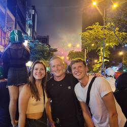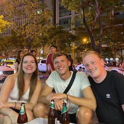 Gestern Abend hab ich bei Pre-Drinks im Hostel dann noch supper nette Brit:innen und jemanden aus Bonaire (mega spannend! Das ist einfach eine winzige Karibikinsel mit 20.000 Einwohnern) kennengelernt, mit denen ich einen sehr witzigen Abend auf der Khao San Road hatte. 🥳