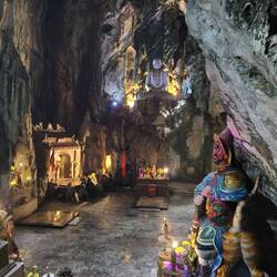 Mein Guide Chau - ein super netter Vietnamese aus Hoi An - hat mich an unserem Hotel abgeholt, meinen Backpack (dank Max nun nochmal ein gutes Stück leichter) auf das Motorrad geschnallt und los ging es! Erster Stopp waren die Marble Mountains in Da Nang, die mich direkt begeistert haben! Die in den Fels geschlagenen Höhlentempel und der Ausblick waren beeindruckend.