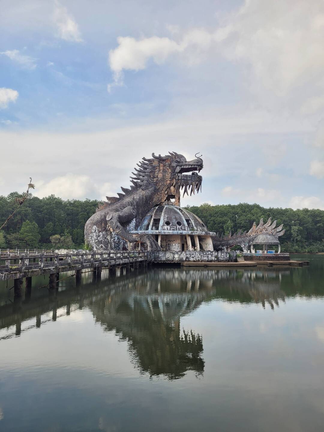 Ich hab mir ein cutes kleines Homestay Hostel rausgesucht, von dem aus ich heute entspannt in den Tag gestartet bin. Zuerst ging es zum auf Instagram sehr bekannten verlassenen Wasserpark. Der ist mittlerweile definitiv kein Geheimtipp mehr, sondern sogar auf Google Maps eingezeichnet. Aber es war trotzdem super beeindruckend - richtig coole Uncharted Vibes. Vom ursprünglichen Wasserpark (bei dem nicht ganz klar ist, warum er nach nur 1,5 Jahren geschlossen hat) sind noch die Dracheninsel und ein paar Rutschen übrig, die sehr coole Fotomotive abgeben.