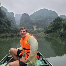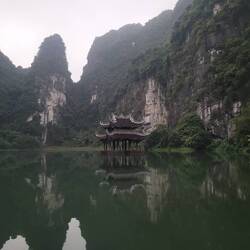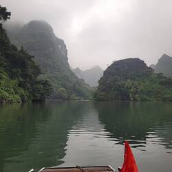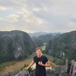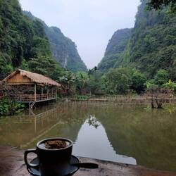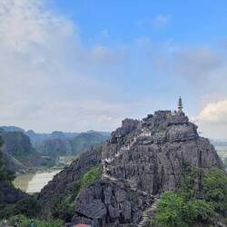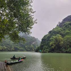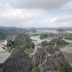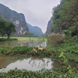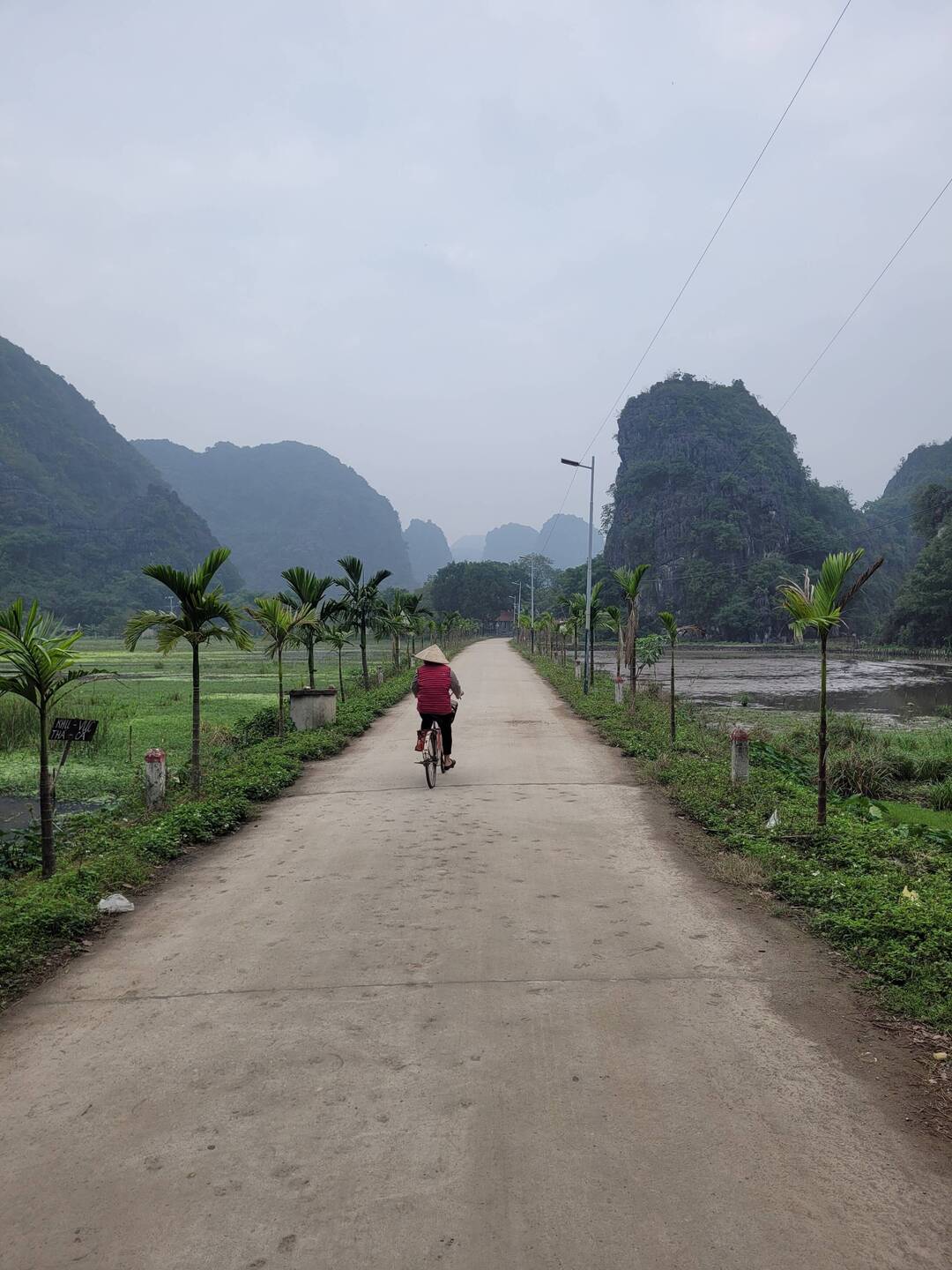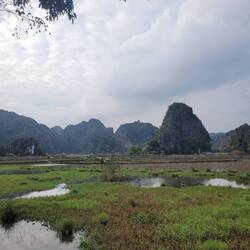 Yes, das sind sehr große Töne haha. Aber diese Szenerie ist wirklich unglaublich! Unzählige raue Karstfelsen, wunderschön grün bewachsen, erheben sich in einer saftig grünen Landschaft voller Reisfelder, Felder, Wiesen, Flüsse. Gleichzeitig wunderschön ruhig, man hört nur ab und an einen Roller, wobei die meisten Vietnames:innen eher mit dem Fahrrad unterwegs sind - mit traditionellem Reishut auf dem Weg die Felder zu bewirtschaften oder die Ziegen auf die Weide zu treiben. Absolutes Vietnam Postkarten Idyll.