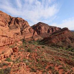 Für das Feiertagswochenende habe ich vorsorglich wieder alle Stellplätze reserviert, diesmal im Red Cliffs State Park. Es ist ein überraschend schöner Park mit Wandertrails, Dinospuren und malerischem Campground. Aber auch dort sind wir lange fast die einzigen... Es sind wohl WIRKLICH alle gerade im Zion Nationalpark. 😅