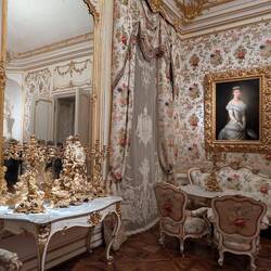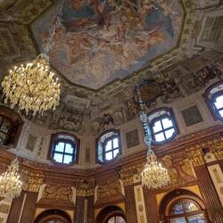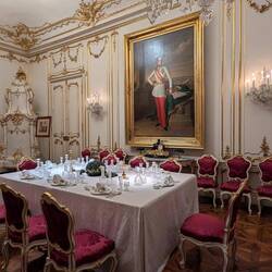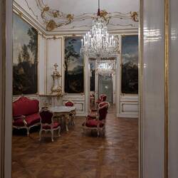 Das geht los beim Frühstückskabinett, weiter zu diversen Arbeits- und Schreibzimmern, einem Porzellanzimmer, einem chinesischen Rundzimmer (nur für geheime Konferenzen), einem Chill-Zimmer (weil voller Chaiselonguen), mehreren Ballsälen, einem Billardzimmer bis hin zum Spiegelsaal, in dem der kleine Mozart seinen ersten Auftritt hatte.