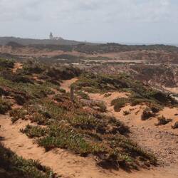 Wir laufen erst an der bis zu 70 Meter hohen Steilküste entlang, dann zweigt der Weg in das Hinterland ab auf die weiß-rot markierte Rota Vincentina. Die Landschaft bleibt unverändert unspektakulär. Rechts ist nix zu sehen, links noch weniger, von vorne kommt nur die steife Brise...wir machen also ein wenig Strecke. Ein guter Zeitpunkt, um den Kopf durch zu lüften.