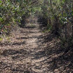 Immerhin geht es diesmal längere Zeit über feste Wirtschaftswege, und nasser tiefer Sand lässt sich besser laufen als weicher tiefer Sand. Auch wenn der Blick meist nach unten gerichtet ist, ein bisschen was von der weiterhin schönen Landschaft bleibt trotzdem hängen.