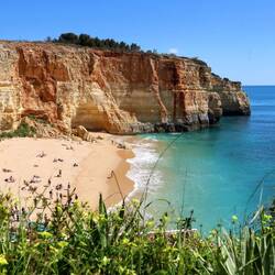 Die Tour startet am Praia de Centeanes und endet am Praia da Marinha, welcher auch schon zum schönsten Strand Europas gekürt wurde. Dazwischen liegt eine 5,7 km lange und mindestens genauso schöne Strecke. Wir verstehen bald, warum die Wanderung trotz Nähe zu Ortschaften und vielbebauter Küste als eines der Highlights der Algarve gilt:
