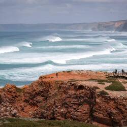 Durch die verkürzte Runde bleibt noch einiges vom Tag übrig. Wir fahren daher nochmal an meinen Lieblingsstrand und lassen die Schuhe ein wenig durchlüften - es ist weiterhin äußerst windig. Die Wellen am Praia de Bordeira rollen hoch und eindrucksvoll auf das Ufer zu. Was für ein Anblick. Da ins Wasser zu gehen wäre lebensgefährlich.