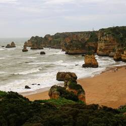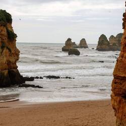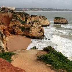 Die Praia Dona Ana soll einer der schönsten Strände der Algarve sein. Jetzt in der Nebensaison und bei grauem Himmel scheint er auch einer der ruhigeren Strände zu sein.