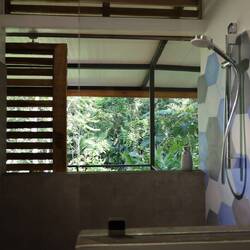 Für heute geht es nur noch unter die Dusche und ins Bett - aber nicht, bevor Christian noch heldenhaft das Zimmer auf Krabbelzeugs gecheckt hat. (Das Thema beschäftigt ihn intensiv, seiner Vorstellung nach werden wir hier jede Nacht wahlweise von heimtückischen Spinnen, Schlangen oder Skorpionen überwältigt. Ich lasse ihn lieber noch eine Nacht in dem Glauben, bis er realisieren wird, dass Mücken in Costa Rica die eigentlichen Stars der Hinterhältigkeits-Parade sind, hehe... )